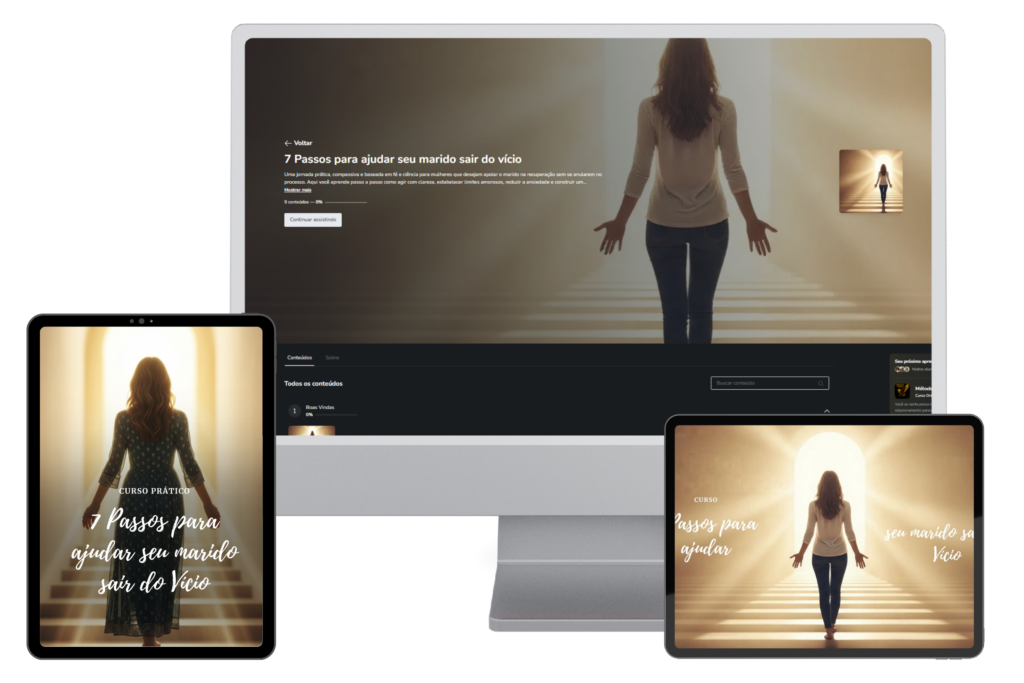 🔥 Uma jornada prática, compassiva e baseada em fé e ciência para mulheres que desejam apoiar o marido na recuperação sem se anularem no processo.